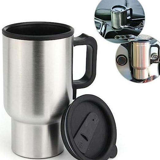This Sleek Travel Mug is prepared to keep your tea/coffee warm wherever you go. Plug it into your car's cigarette lighter for heat on your long commute. Your tea/coffee will stay hot and fresh all the way to the office.This Travel Mug is made of durable stainless steel and holds 400 of your favorite hot beverage.