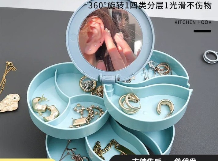 The 4-layer rotating storage design saves space so you can effectively store earrings,watch, rings, necklaces, bracelets, lipsticks, cosmetics, car keys, or other small supplies neatly to avoid tangling and find everything quickly.